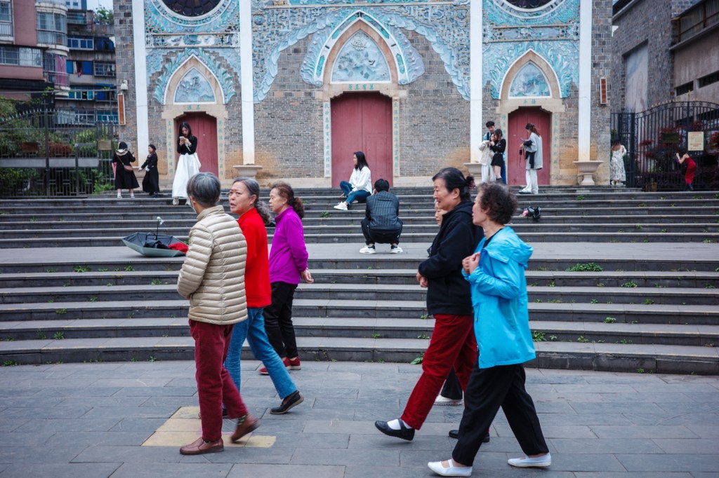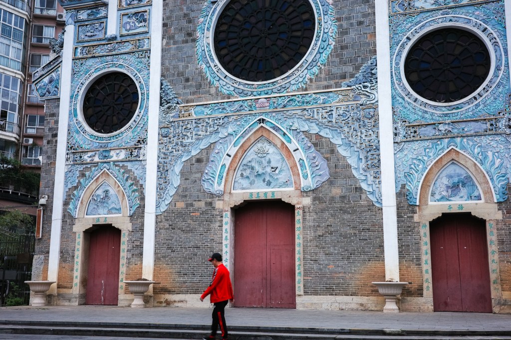 天主堂始建于1798年,现存建筑于1876年完工,其朝西立面中规中矩,而有特色的地方是东侧的正立面,耸立着高30米、宽18米的中式牌坊,布满了千姿百态的山水花鸟等中国传统浮雕,又设有三个圆窗,这种中西合璧的建筑风格通常是出自宗教本土化的需要,却也是独特风格所在,确实是饭后散步、网红打卡的好地方。