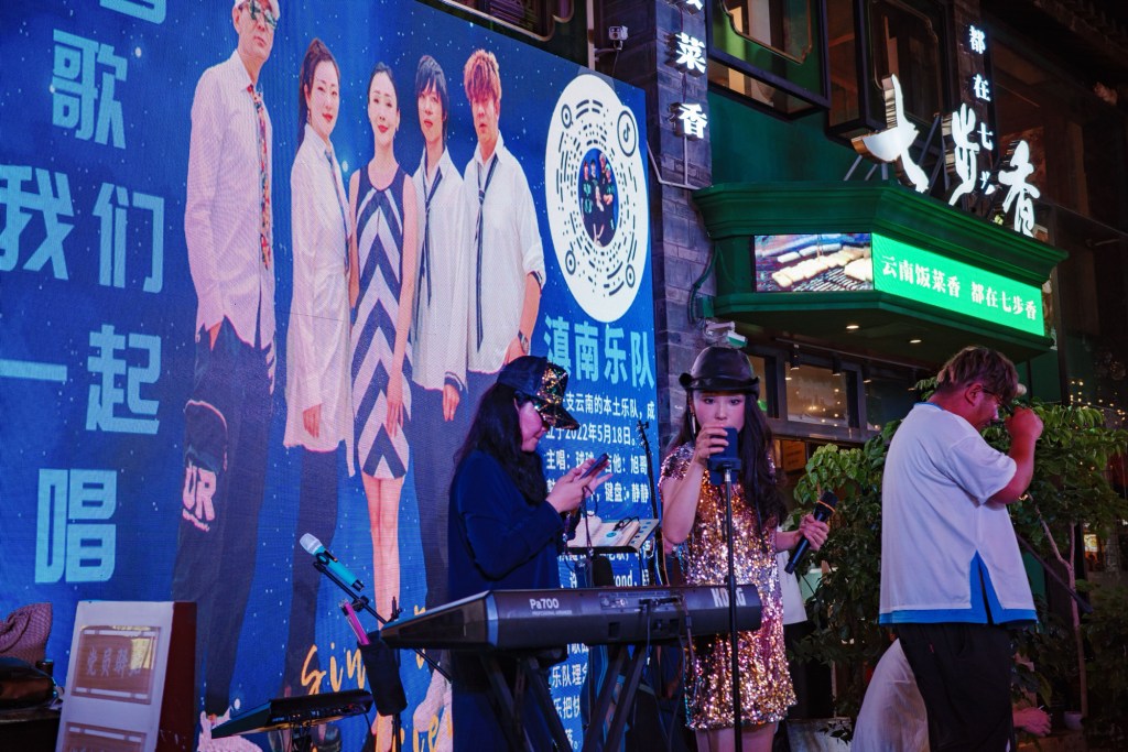 Somehow, the back wall of the usual performance place has been painted with “Kunming”, drawing a steady stream of people eager to take photos. It makes me think about collecting name-tagged photos from various cities in the future.