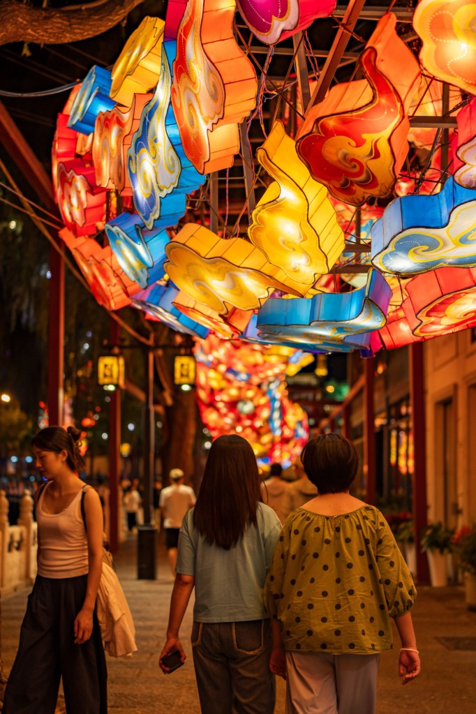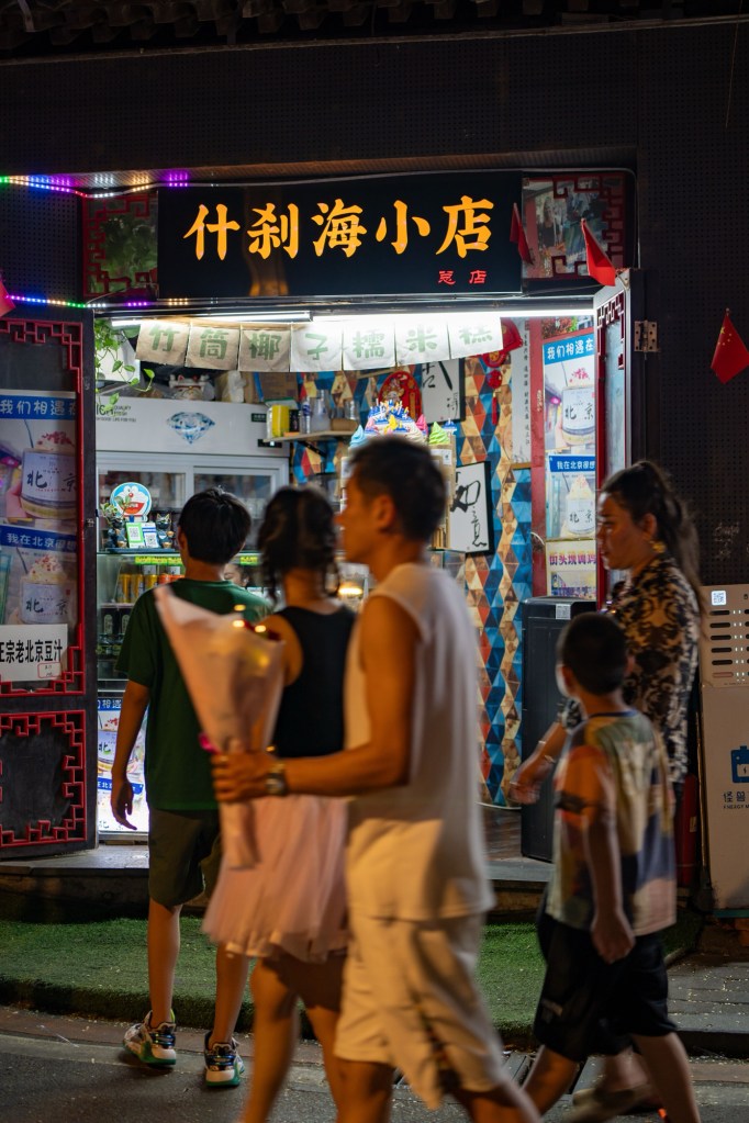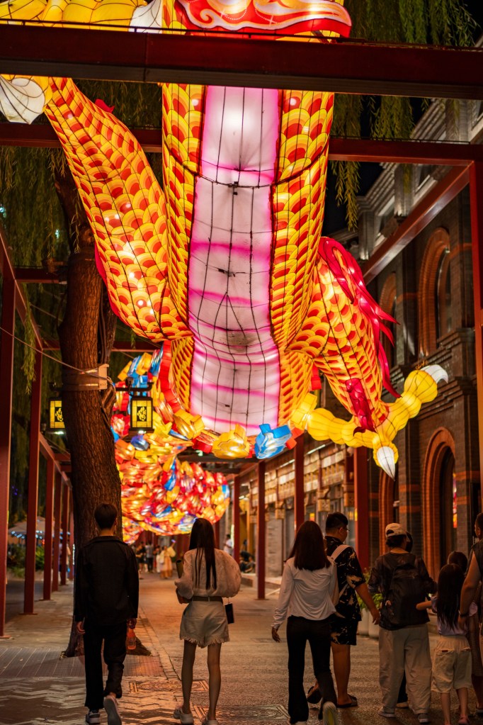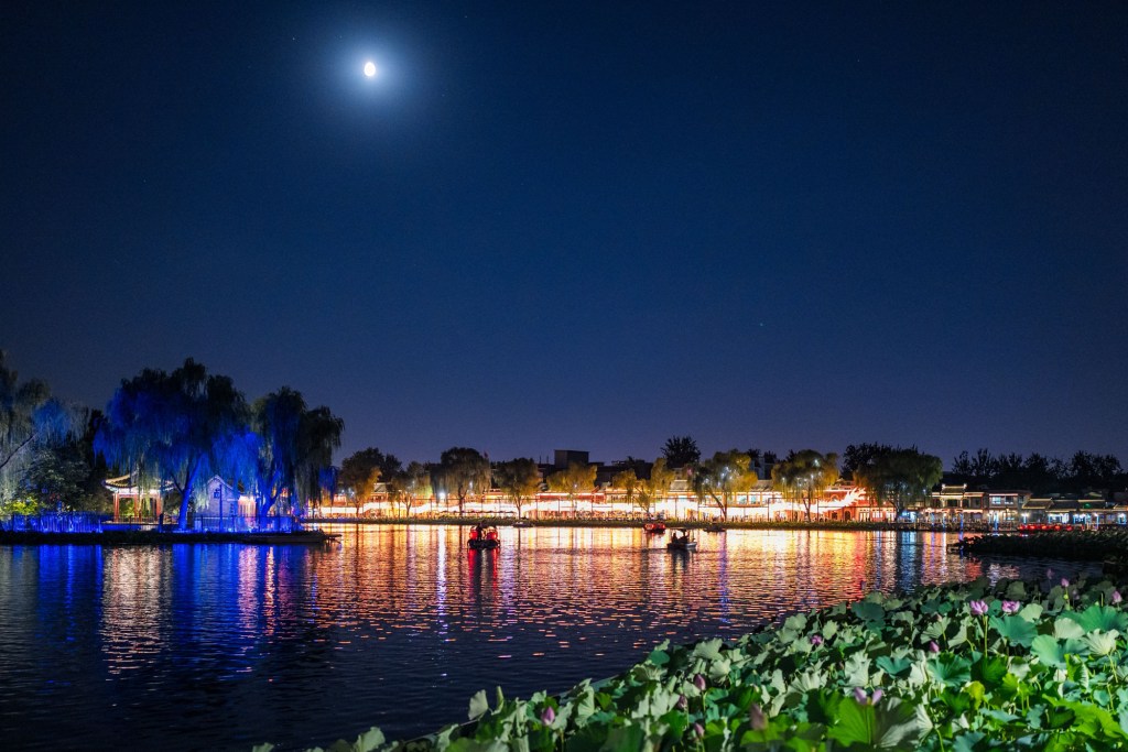 Returning to Qianhai, I walked past bars where folk music played, and the “moon in the reflection” was still “negotiating with the streetlight.” The lotus flowers were about to bloom, and the dragon lantern in the street lit up, creating a dance of light and shadows with the tourists under the moonlight. This place remains a wonderful spot for those seeking both noise and tranquility.