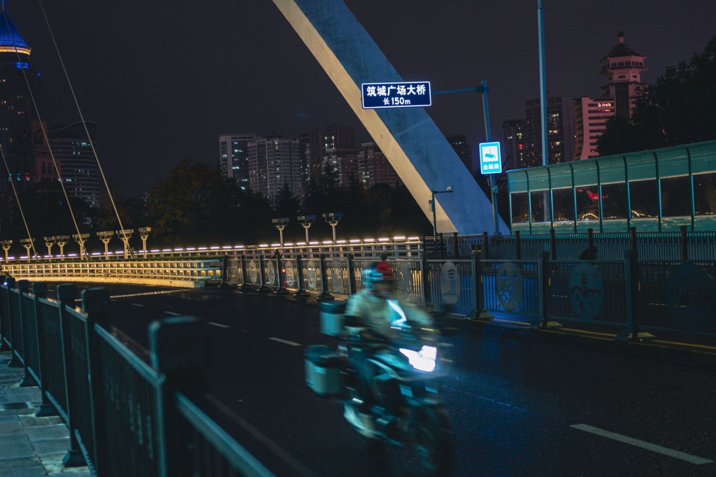 After night fell and the rain stopped, I strolled past Zhucheng Square. Compared to the bustling atmosphere during my visit in summer, the square felt quite desolate in winter. The colorful lights on the bridge and the illuminated wall by the river were off, likely because few people were willing to go out in such weather.