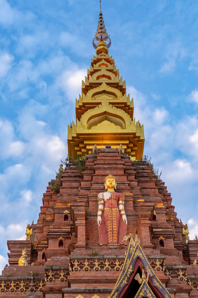 It was already four or five in the afternoon, and the weather was clear. The main entrance to the Dajinta Temple, also known as Great Golden Pagoda Temple, was under renovation, so I had to enter through the side door. Indeed, it was a typical Southern Buddhist temple, resembling the Great Buddha Temple in Thailand almost exactly. Taking advantage of the good light before sunset, I snapped a few photos outside the temple, with the warm yellow sunlight casting a majestic and dreamlike glow on the golden stupa. As the sun began to set, I paid 40 yuan for incense money to enter the temple. Although the temple wasn’t large, the interior was quite exquisite, with vividly colored murals depicting the Buddha’s life, showcasing artistic flair. I was particularly impressed by the fact that in Southern Buddhism, instead of burning incense, water is offered—environmentally friendly and tranquil.