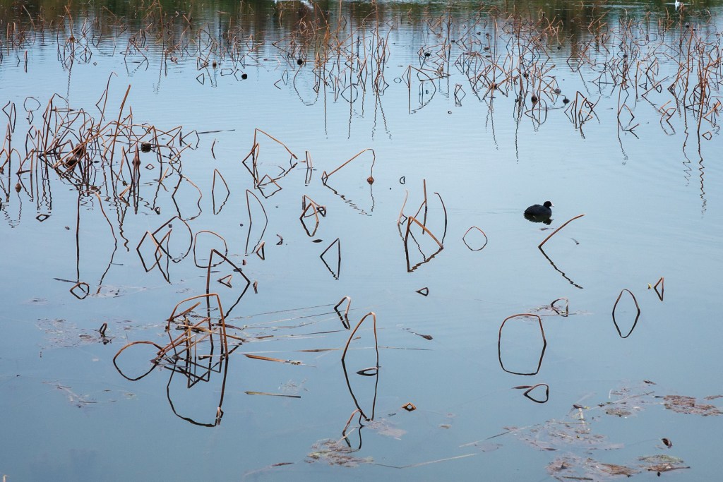 With half a day of free time before leaving Kunming at the end of the year, I decided to take a walk by Dianchi Lake early in the morning. After all, I had yet to see the seagulls in Kunming since the beginning of winter this year. Passing through Yongchang Wetland, the bleakness of winter enveloped me, with drooping, withered lotus stems reflecting in the water, resembling the lingering lotus paintings of Wu Guanzhong, serene and poetic.