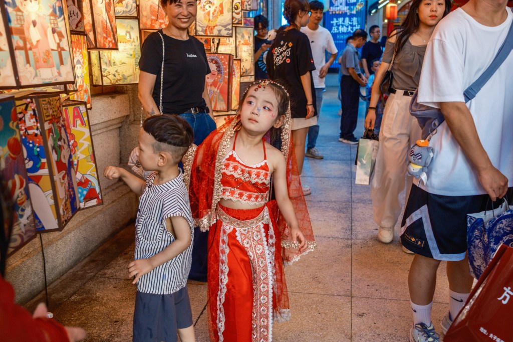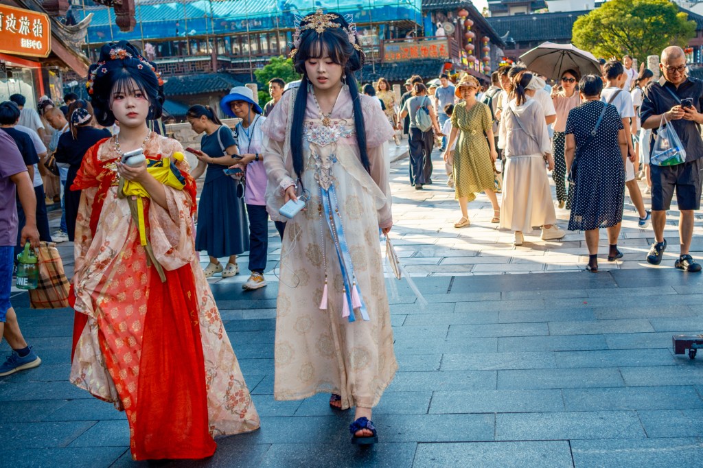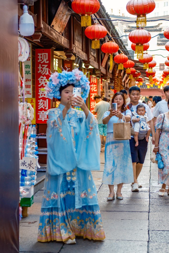 暑气升腾中,夫子庙汉服旅拍火热依旧,褒衣博带,飘飘若仙,不惧衣下挥汗如雨,只恐圈内冷冷清清。