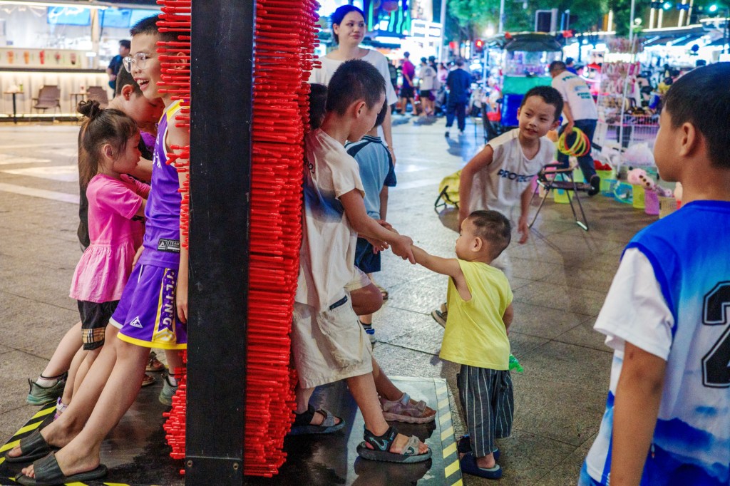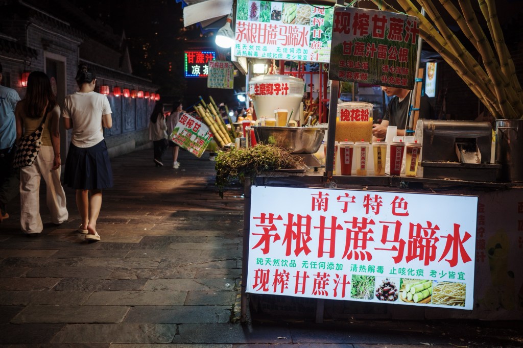 The City God Temple remains as lively as ever. A band seems to have taken up permanent residence there, playing on without a worry of disturbing the “City God” himself. Nanning is undoubtedly a prime example of the “Temple-Market Symbiosis” that has persisted since the Hongwu era of the Ming Dynasty. As new traditional-style buildings rise near the Xinhui Gathering Hall, the “Three Streets and Two Alleys” area continues to expand. Here, alongside local staples like Suanye (pickled fruits), oysters, and Luosifen, modern icons like Pop Mart and AI are everywhere—a clear sign of the times moving forward.